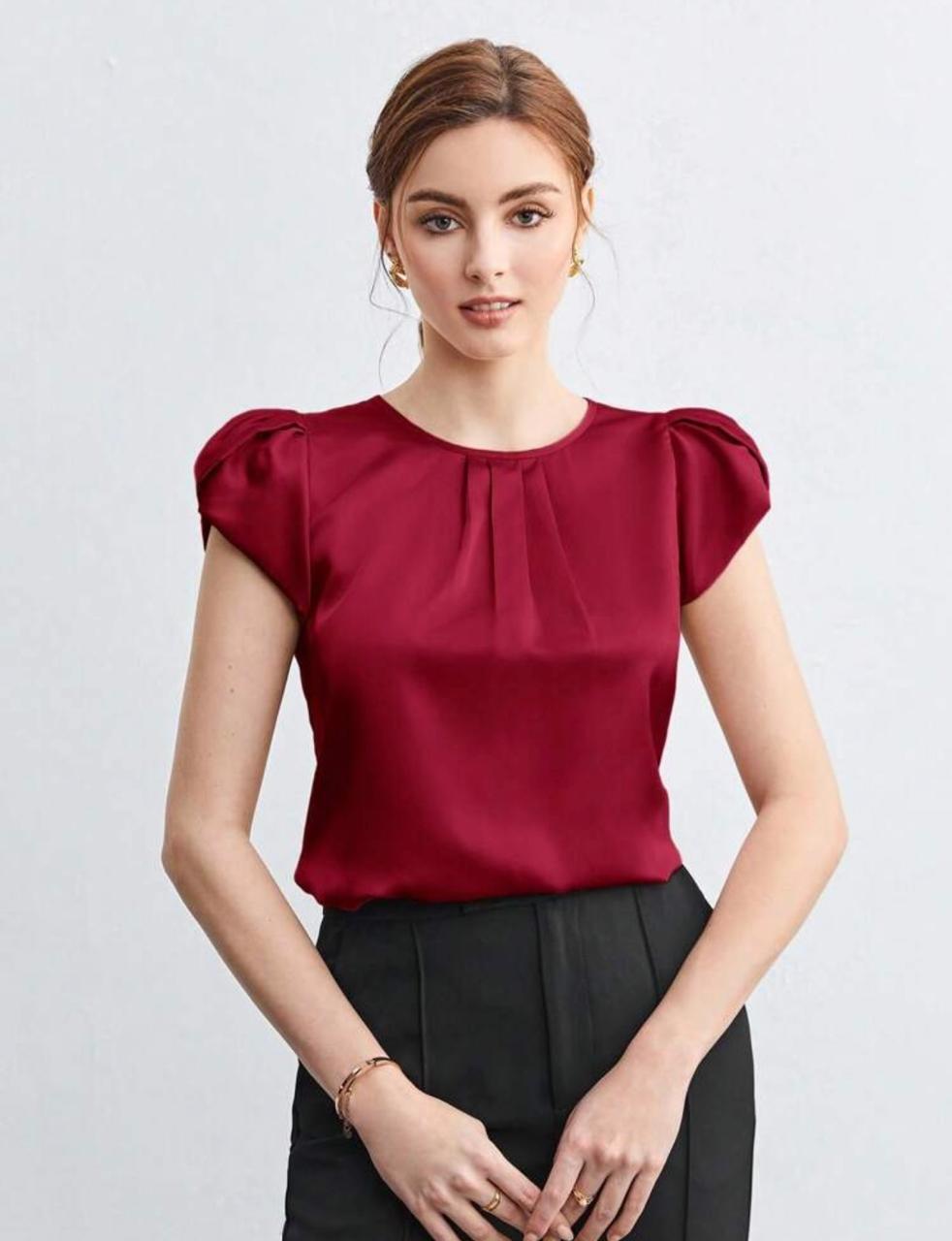 Keep it chic and comfortable with the BizChic Solid Color Blouse, featuring a classic round neck, pleated details, and stylish batwing sleeves. Perfect for urban commutes, office wear, business casual looks, or minimalist everyday outfits, this loose-fit top combines elegance with effortless style.