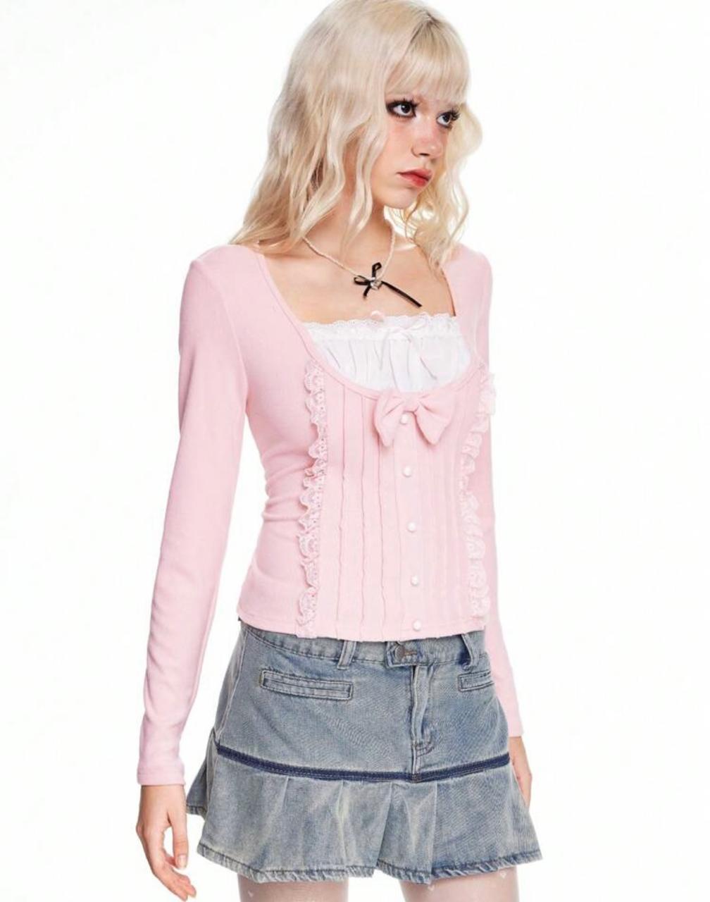 The ROMWE Kawaii Himekaji women’s 2-in-1 long sleeve T-shirt brings playful charm to your wardrobe. Designed with a trendy layered effect and decorated with cute bow details, this versatile top perfectly blends comfort and Japanese street fashion. Ideal for casual outings, school looks, or everyday kawaii styling, this 2-in-1 T-shirt is a must-have for fans of Himekaji and J-fashion aesthetics.