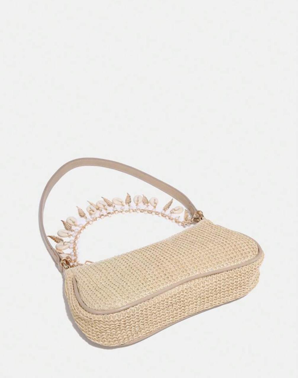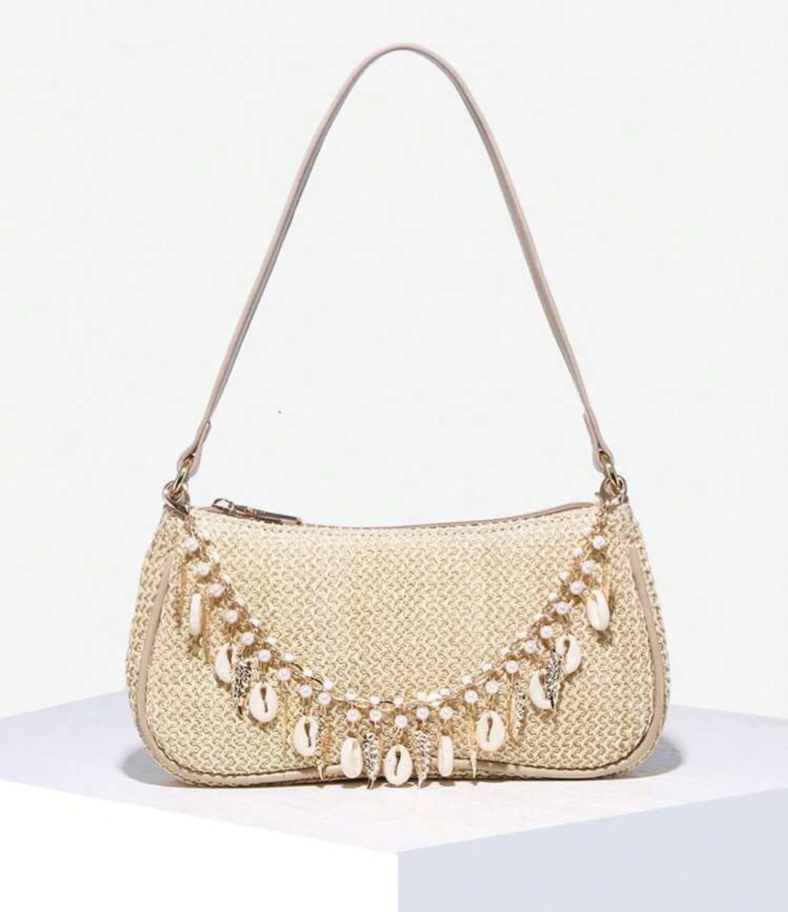 Add a touch of coastal charm with the Novachic Simple Woven Zipper Shoulder Bag, featuring shell, pearl, and starfish chain accents. Designed in a trendy hobo style, this underarm bag is perfect for daily wear, beach vacations, and summer outings. Note: Thin decorative leaves may shed slightly during transit — this is normal.