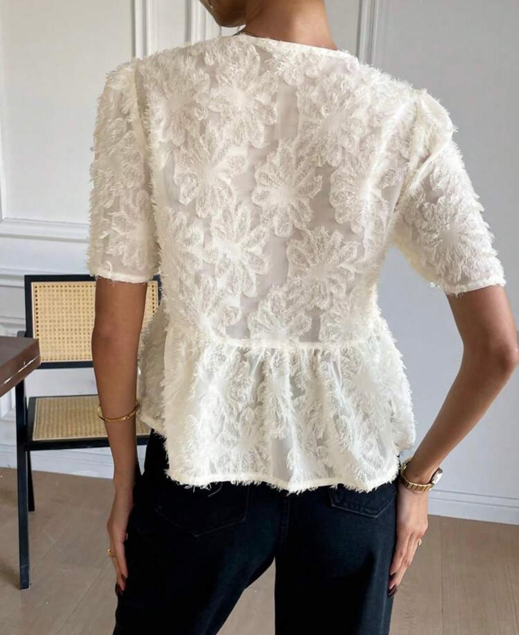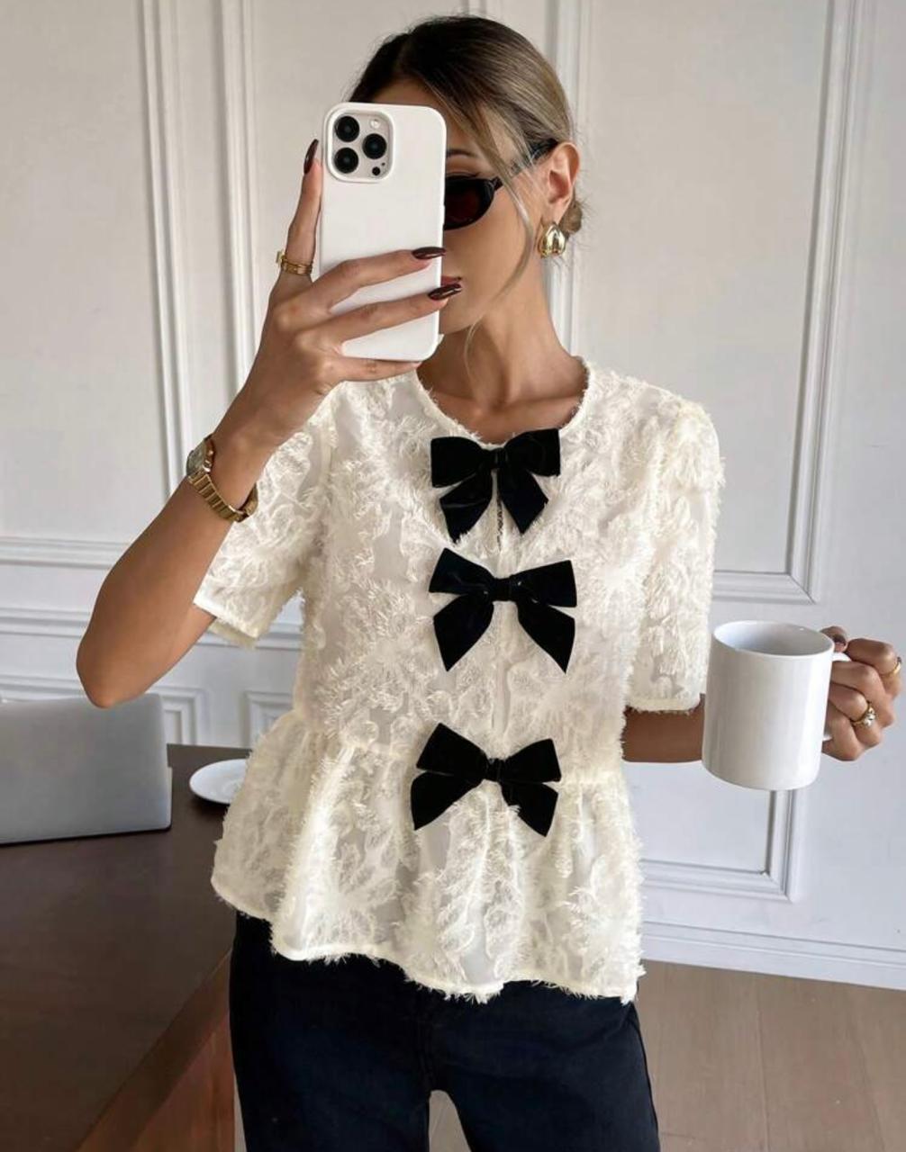 Add feminine charm to your summer wardrobe with the Serisse women’s elegant bowknot chiffon shirt. Featuring a romantic jacquard floral texture, ruffled details, and a flattering babydoll silhouette, this short sleeve blouse combines style and comfort. Perfect for everyday wear, French-inspired holiday outfits, or casual chic looks, this colorful chiffon top pairs beautifully with skirts, jeans, or tailored pants for a versatile summer style.