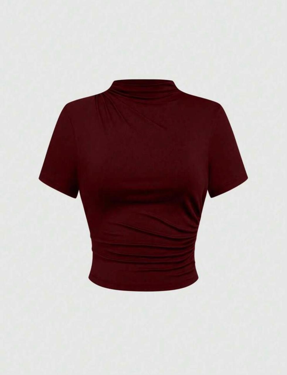 The Clasi 2-piece women’s outfit is the perfect blend of comfort and elegance. This plus size set includes a ruched knit short sleeve top and a flowy long skirt in a rich burgundy shade. Designed for versatility, it’s an ideal choice for spring and summer—whether for commuting, casual outings, or office wear. Pair it with heels for a chic business casual look or sandals for relaxed everyday style. A timeless addition to any wardrobe.